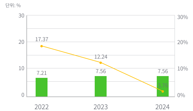 | 자기자본이익률(ROE) | % | 3.86 | 5.17 | 7.29 | 4.76 | 9.64 | 4.76 | |